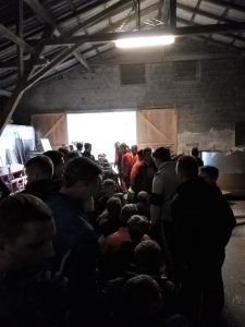 Die Eggelsberger legten zuerst Hand an und probierten den Baum hochzuheben. Dies geling ihnen nicht, denn wir schlossen uns mit der LJ aus Tarsdorf zusammen und setzten uns alle gemeinsam auf den Baum. Deshalb brachen ihnen alle Stöcke. Nun waren wir an der Reihe und schafften es tatsächlich, den Maibaum hochzuheben und aus der Halle zu tragen. Somit war der Maibaum gestohlen und wir brachten ihn nach Tardorf.